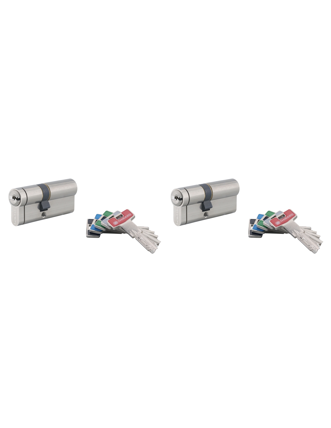 Il cilindro T2 di THIRARD è una soluzione ideale per garantire la sicurezza dei tuoi accessi. Progettato con sistema a chiave reversibile, offre un comfort di utilizzo ottimale, permettendo di bloccare e sbloccare facilmente senza preoccuparsi del verso di inserimento della chiave. Questo cilindro viene fornito con 5 chiavi lunghe, ciascuna dotata di testa colorata per facilitarne l’identificazione ed evitare confusioni, un vantaggio importante per una gestione semplificata degli accessi.