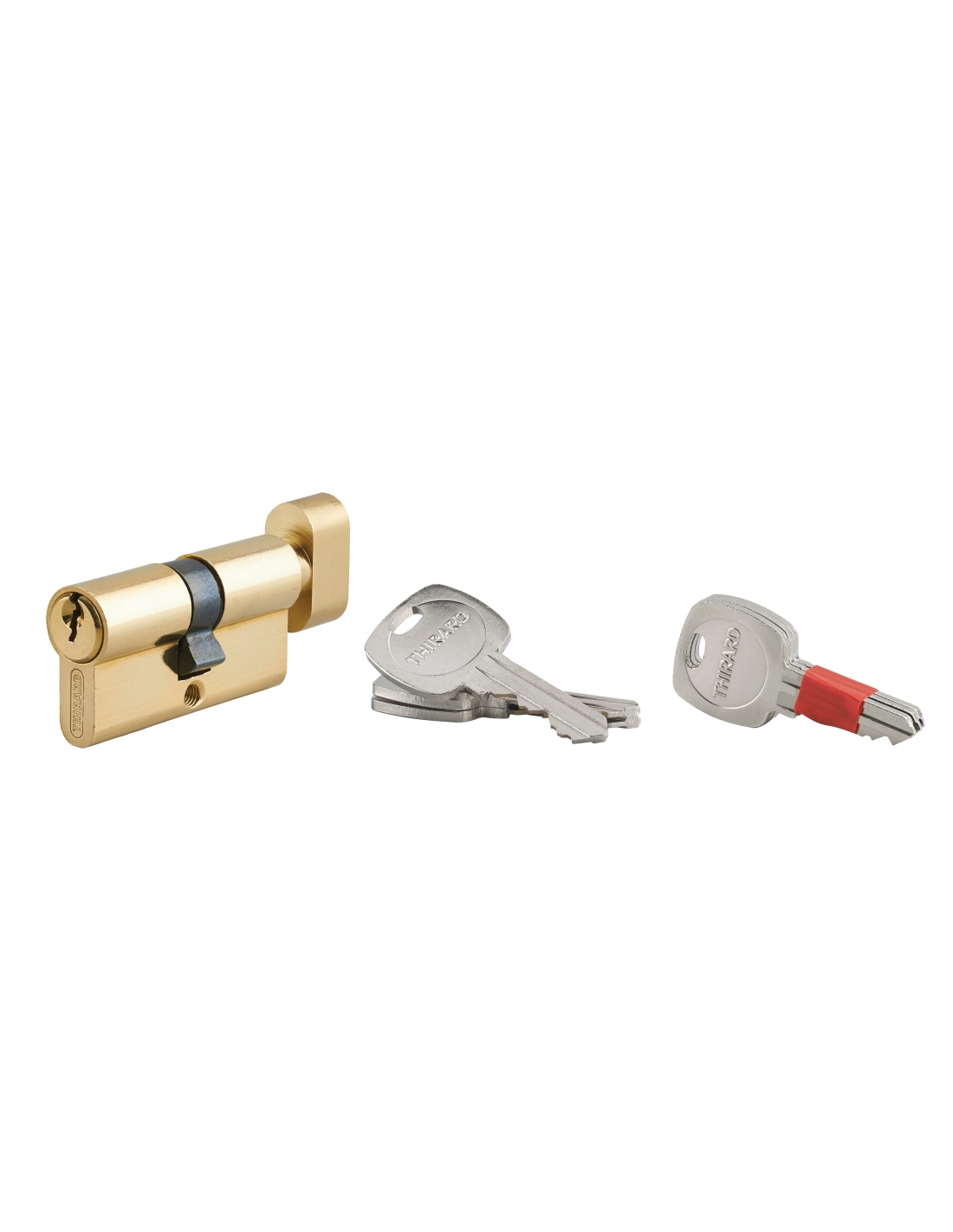 Cilindro con pomolo 30Bx30 mm modificabile, anti-estrazione, anti-perforazione, ottone, 2x3 chiavi – THIRARD