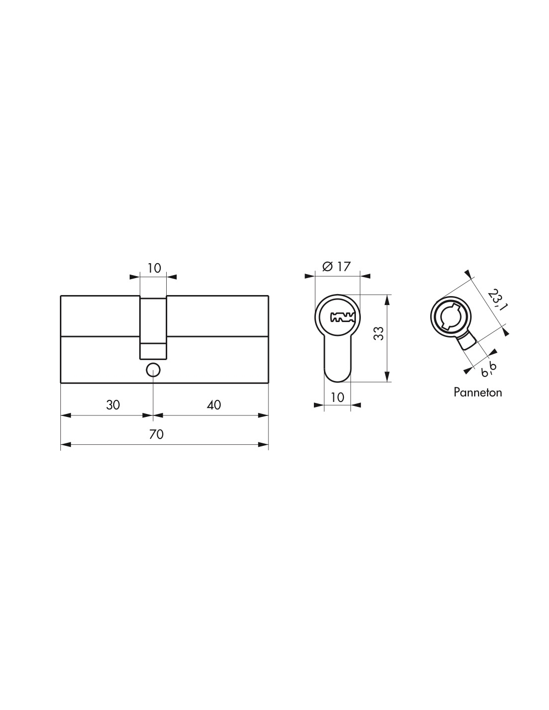 Cilindro per serratura, 30x40 mm, nichelato, anti-estrazione, anti-perforazione, anti-rottura, 5 chiavi – THIRARD