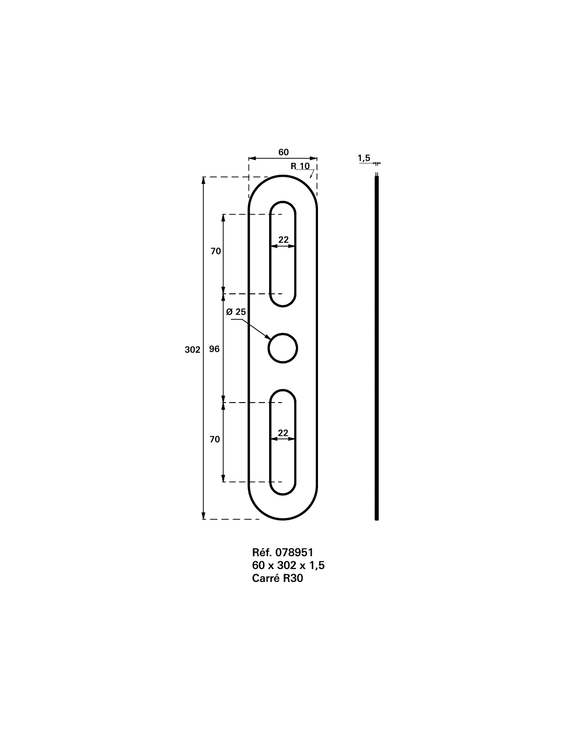 Piastra di finitura arrotondata 60x302 mm, inox - Intelock