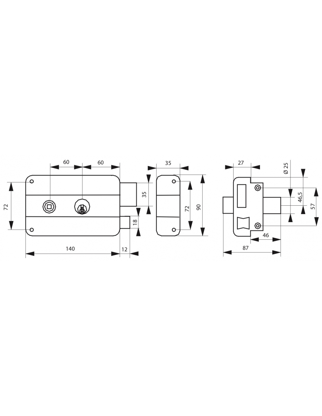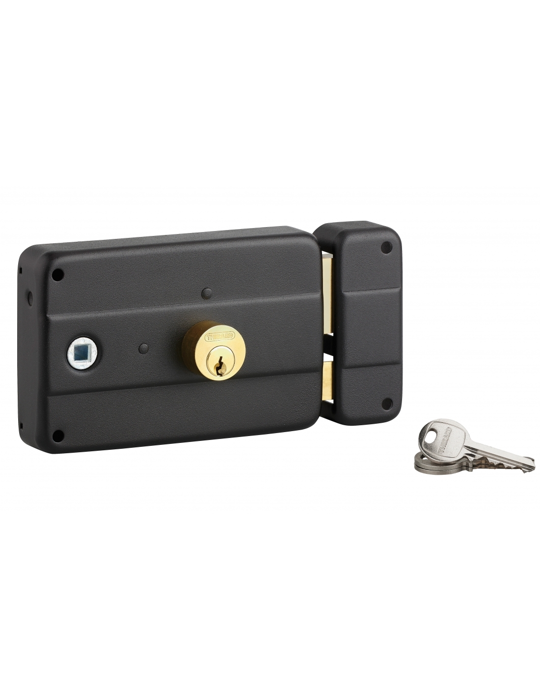 Serratura orizzontale da applicare doppia entrata destra 140x90 mm, entrata 60 mm, nero, 3 chiavi - THIRARD
