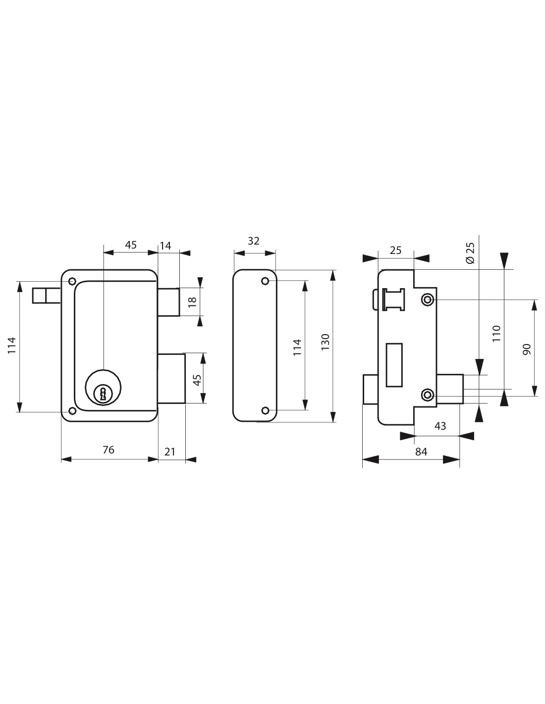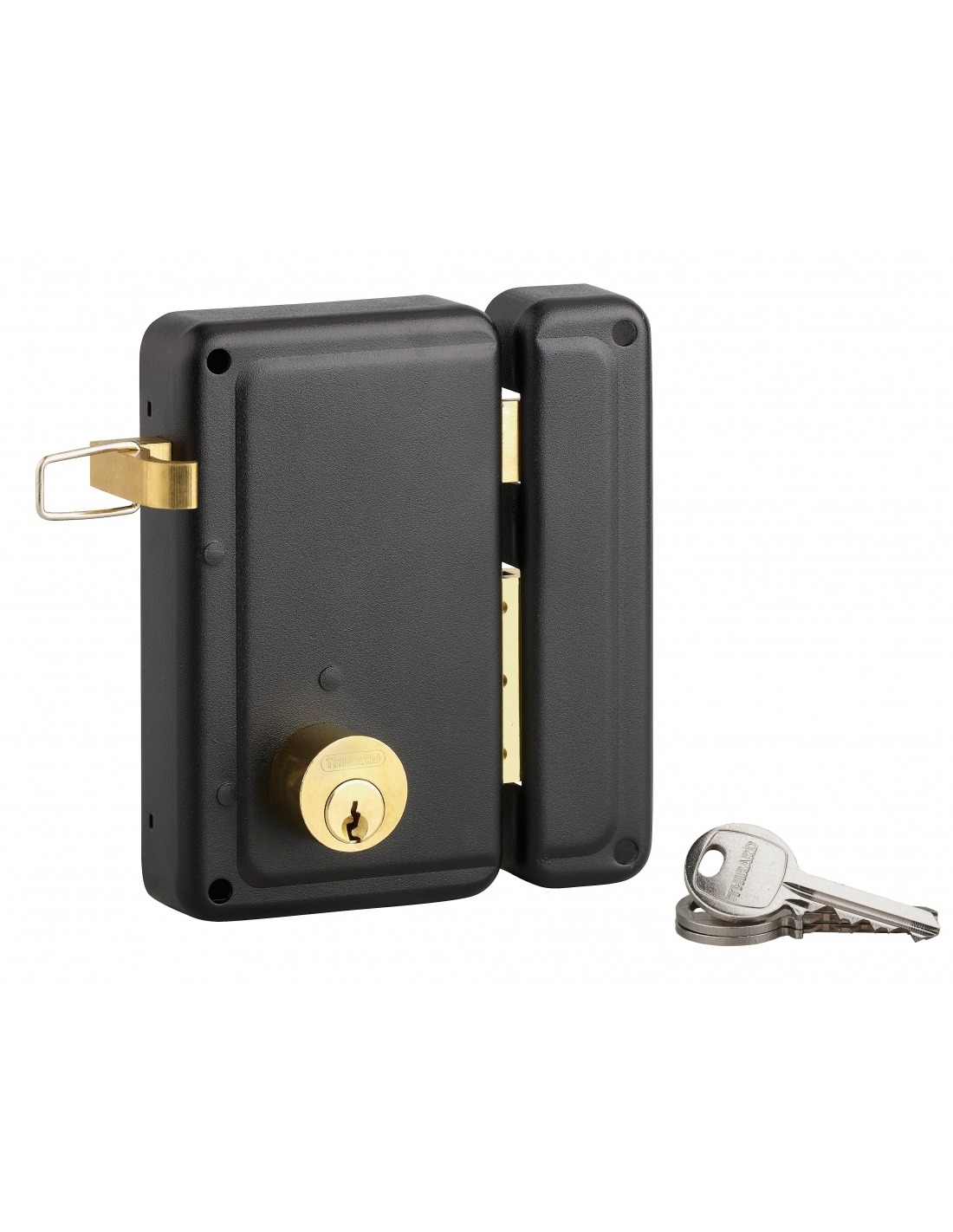Serratura verticale a tiraggio, doppia entrata, destra, 76x130 mm, asse 45 mm, nero, 3 chiavi - THIRARD
