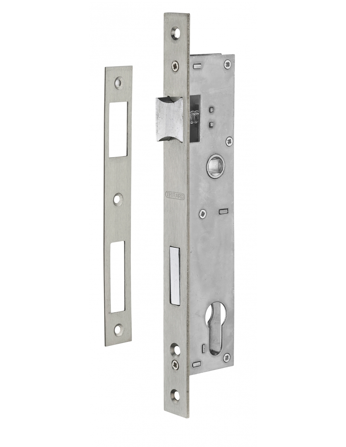 Corpo serratura da incasso a cilindro per infissi metallici, asse 24 mm, estremità quadrate, inox - THIRARD