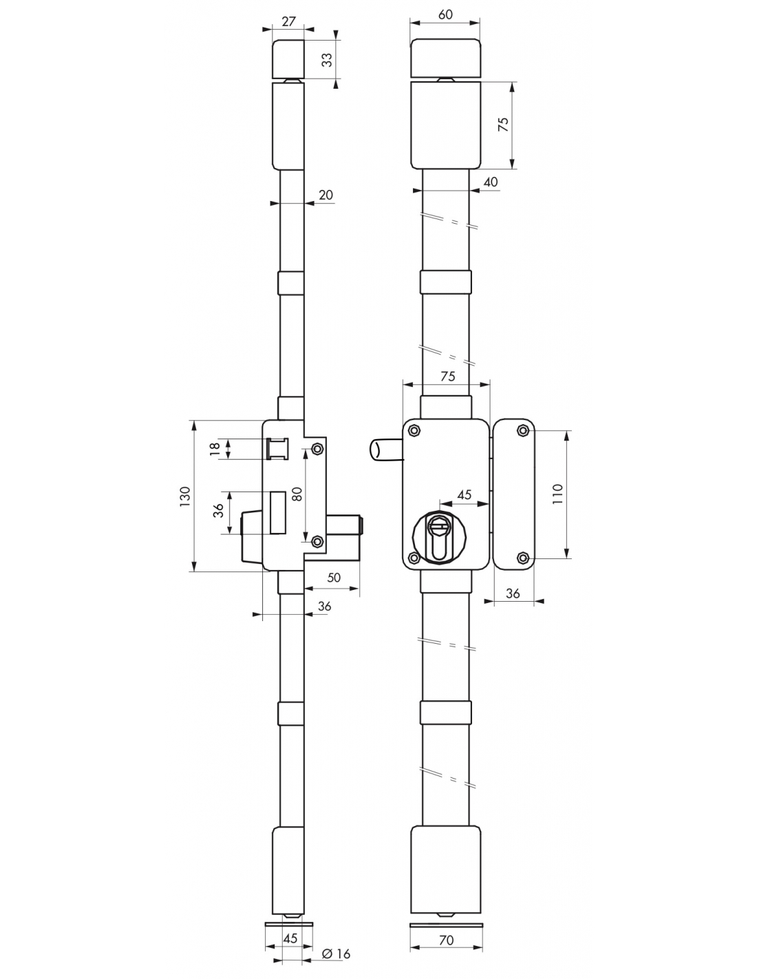 Aste piatte in acciaio Ø 16 mm per una regolazione precisa della lunghezza