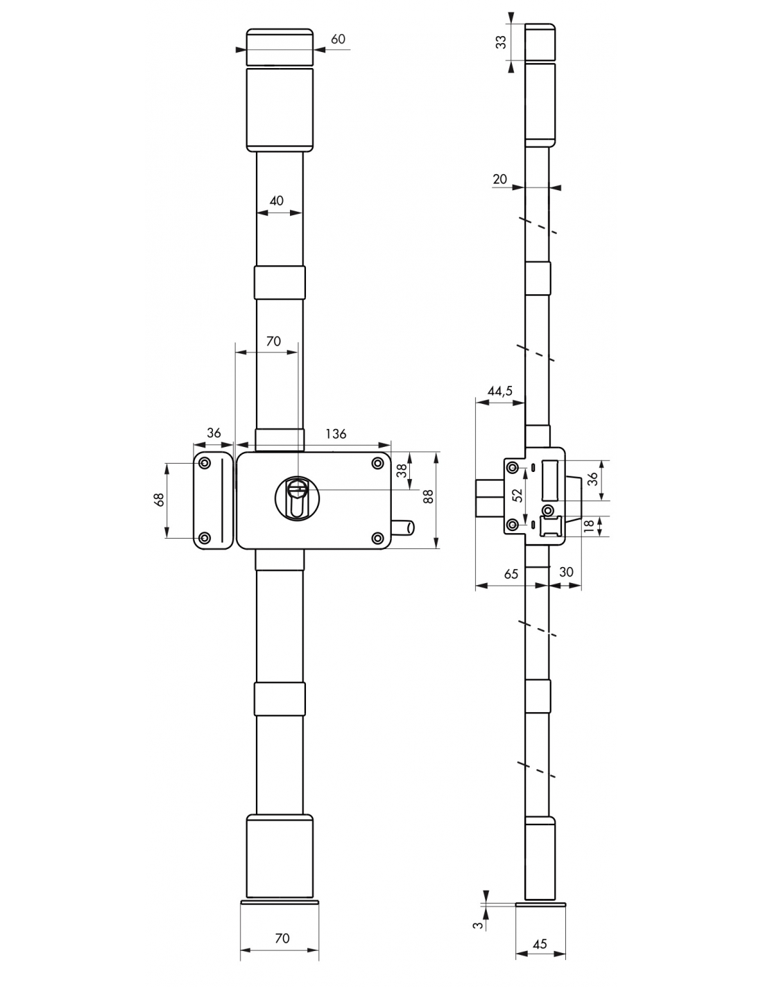 • Installazione facilitata grazie ai catenacci superiori e inferiori