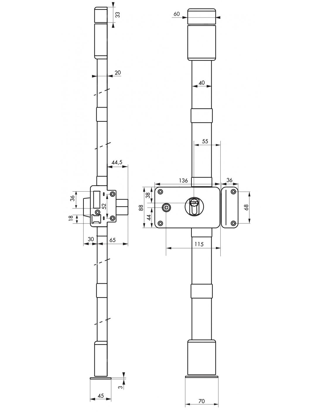 • Spessore porta: fino a 45 mm