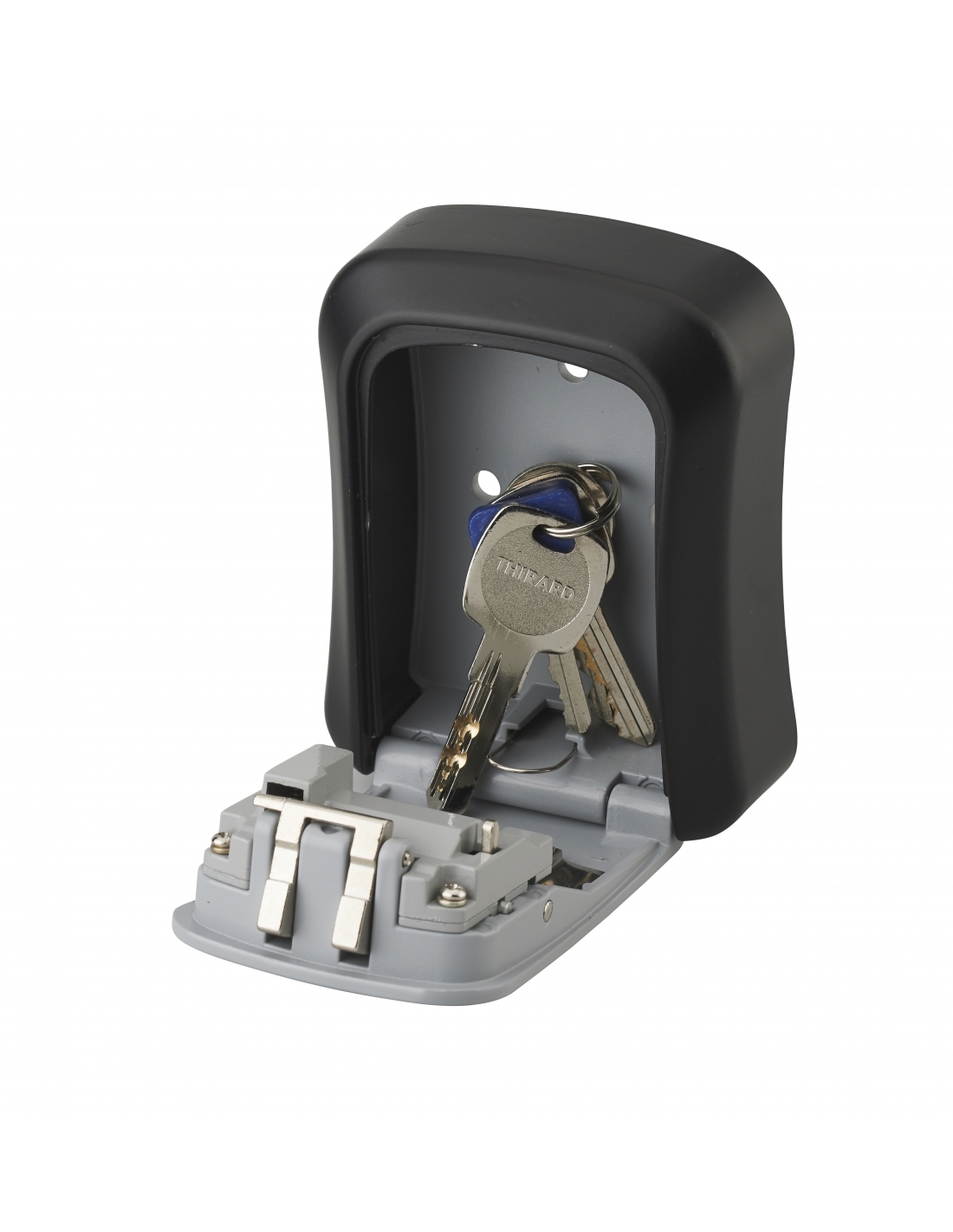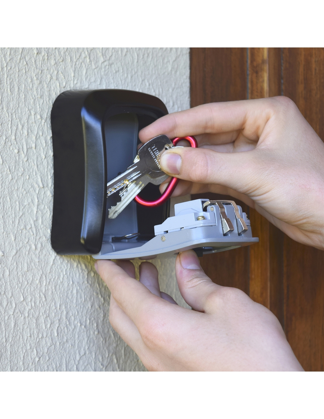 Progettata per il montaggio a parete, questa cassetta portachiavi a combinazione si fissa direttamente al muro tramite viti.