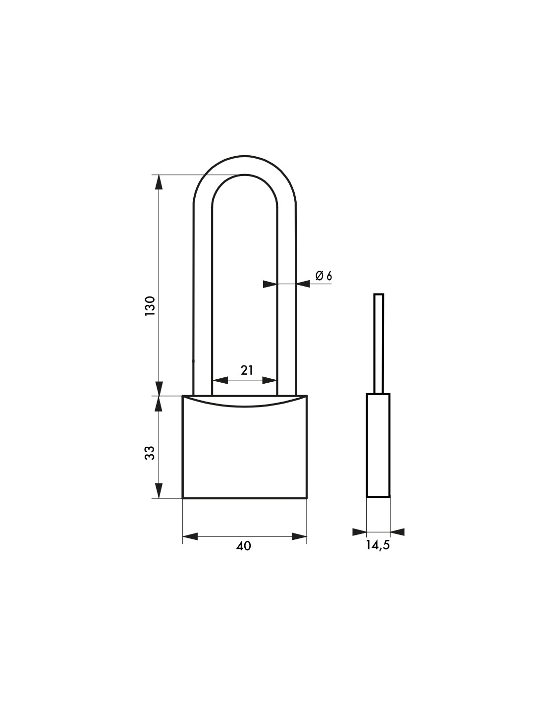 Lucchetto a chiave Tipo 1, ottone, interno, arco alto in acciaio, 40 mm, 2 chiavi - THIRARD