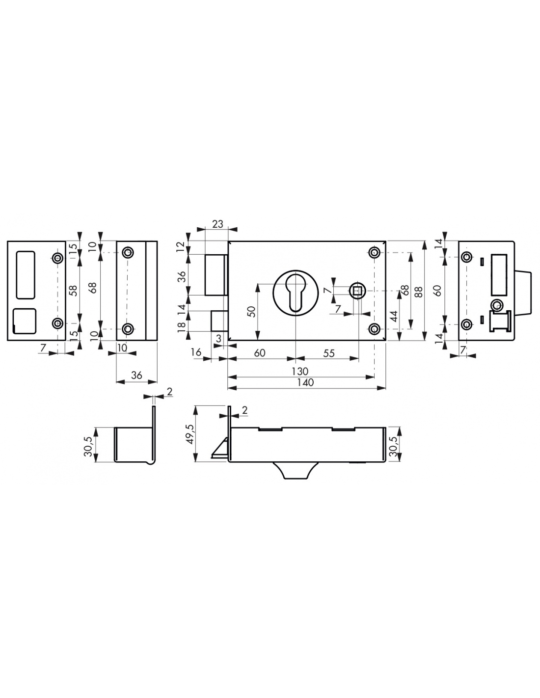 Catenaccio e mezza rotazione sporgenti di 3 mm, in acciaio zincato