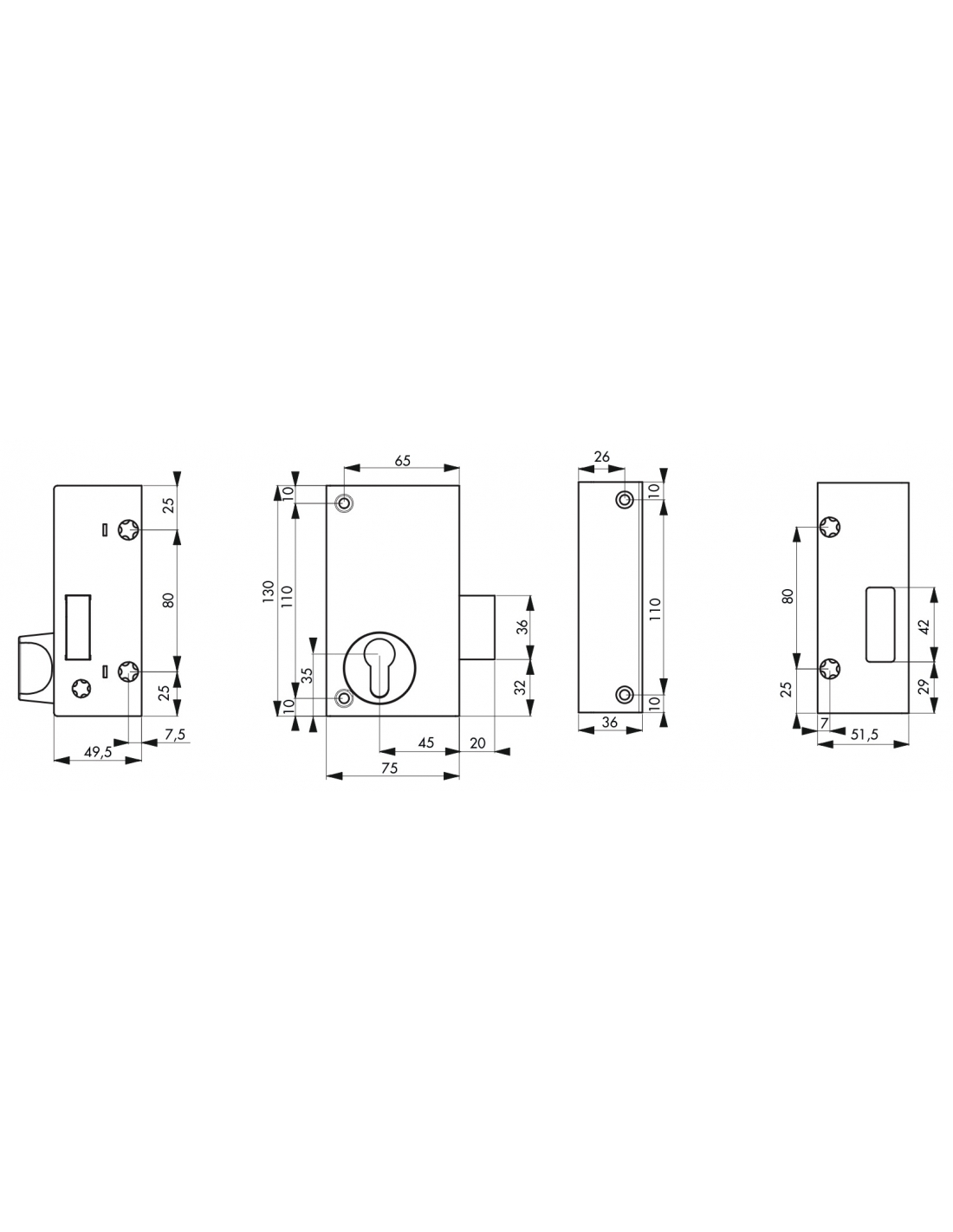 Serratura verticale doppio ingresso cantina, solo catenaccio, destra, 45 mm, 75 x 130 mm, nero - THIRARD