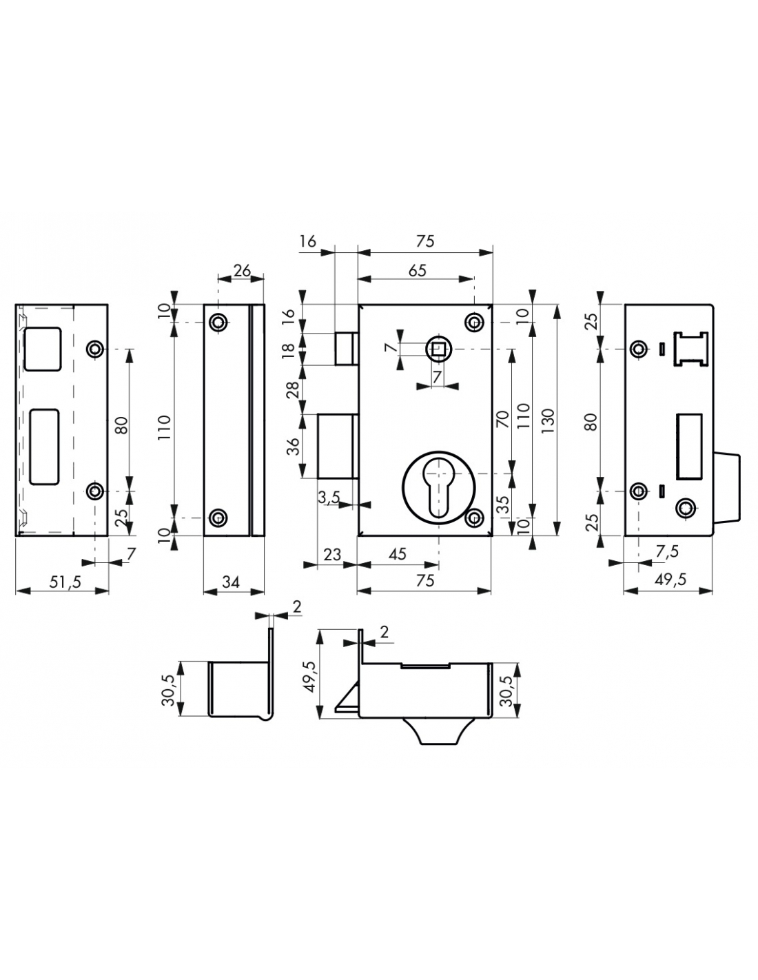 Serratura verticale da applicare doppia entrata con quadro per cancello, sinistra, 75x130 mm, entrata 45 mm, nera - THIRARD