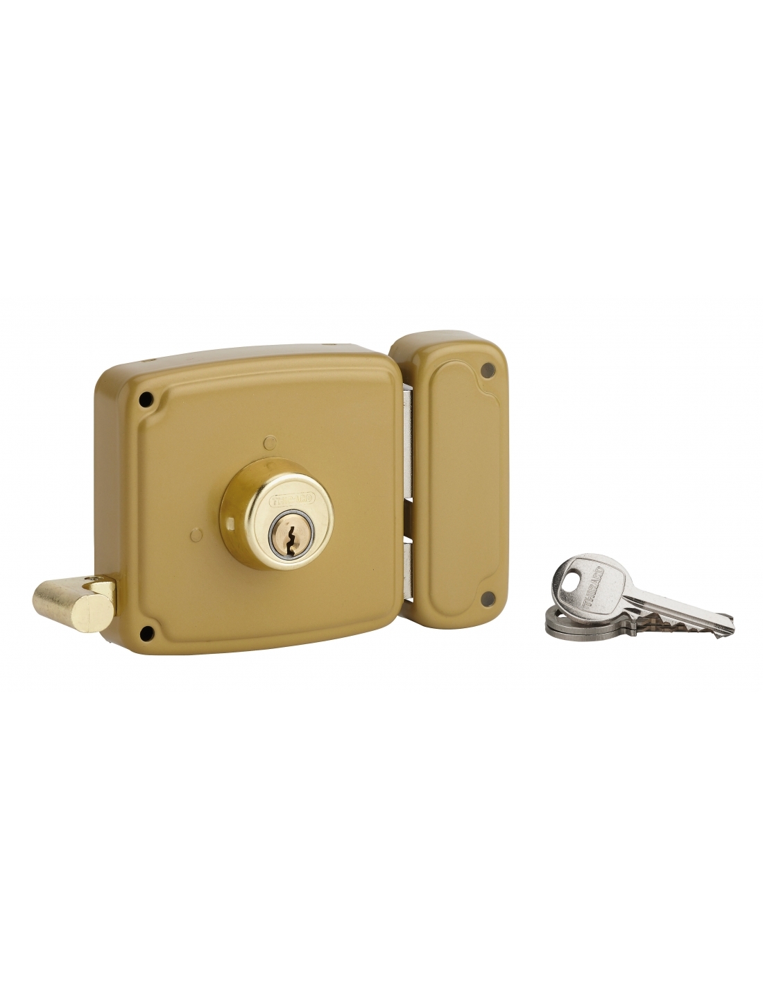 Serratura orizzontale doppia entrata, tiraggio, destra, 100x94 mm, asse 50 mm, marrone, 3 chiavi - THIRARD