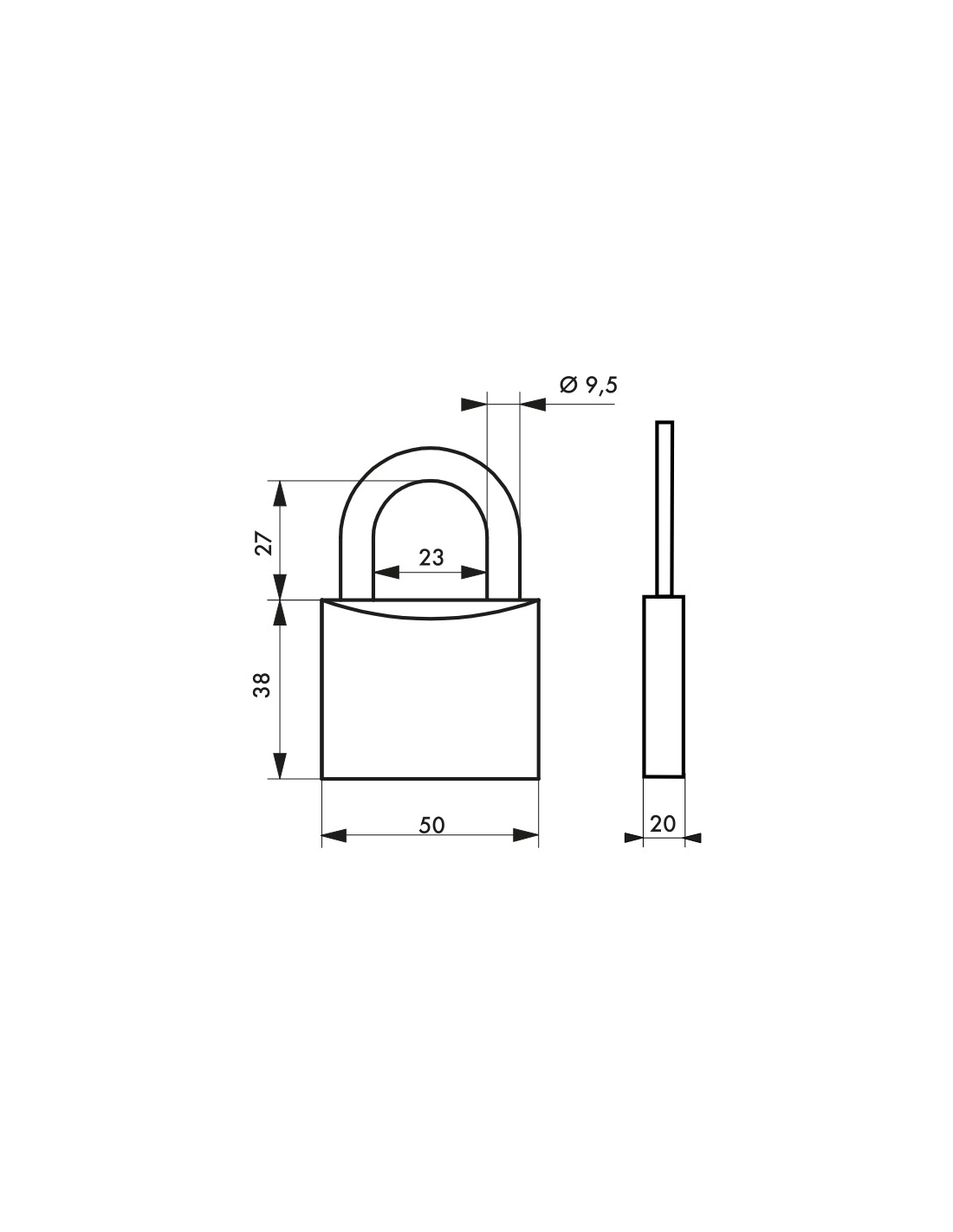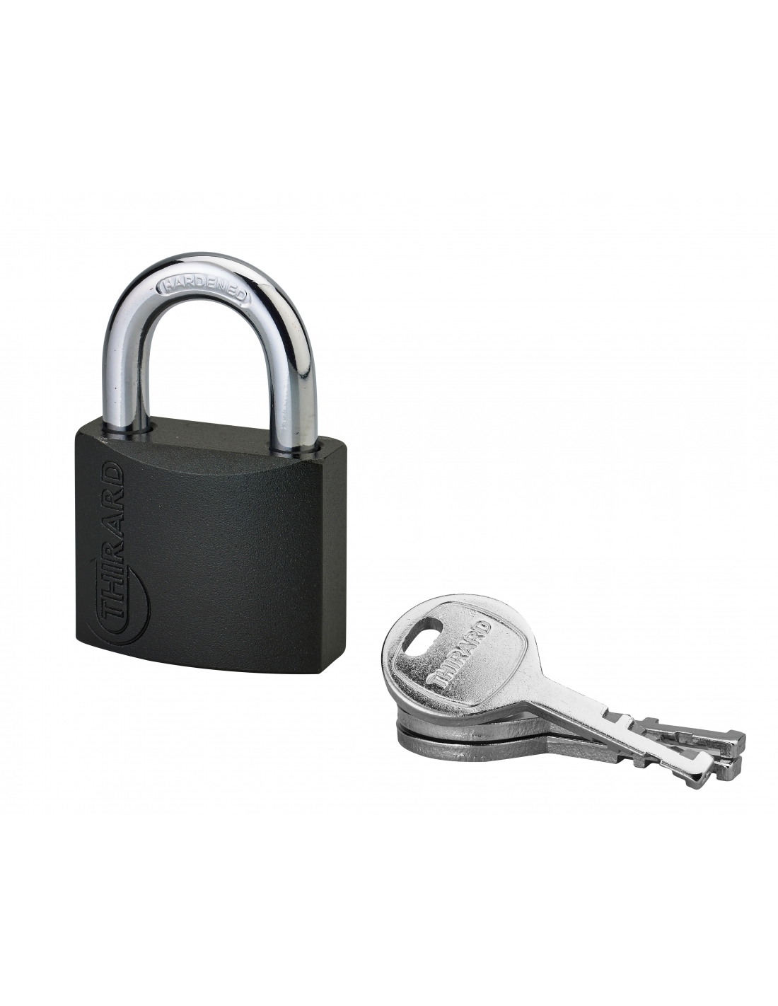 Corpo in alluminio nichelato. Arco in acciaio cementato nichelato. Doppio bloccaggio a sfere. Chiusura con chiave. Meccanismo a dischi. 3 chiavi.