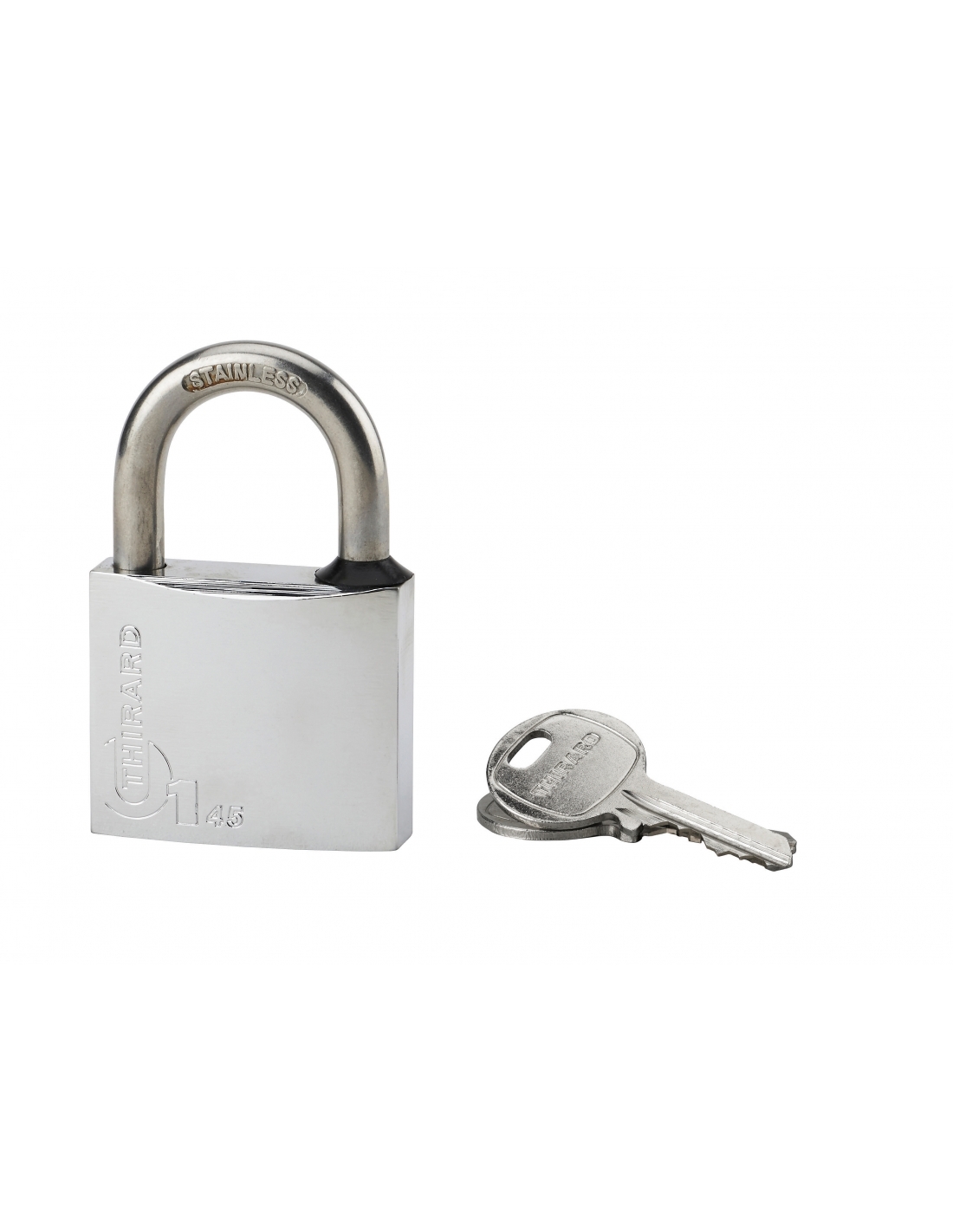 Lucchetto a chiave Tipo 1, ottone, per esterno, arco in acciaio inox, 45 mm, 2 chiavi – THIRARD