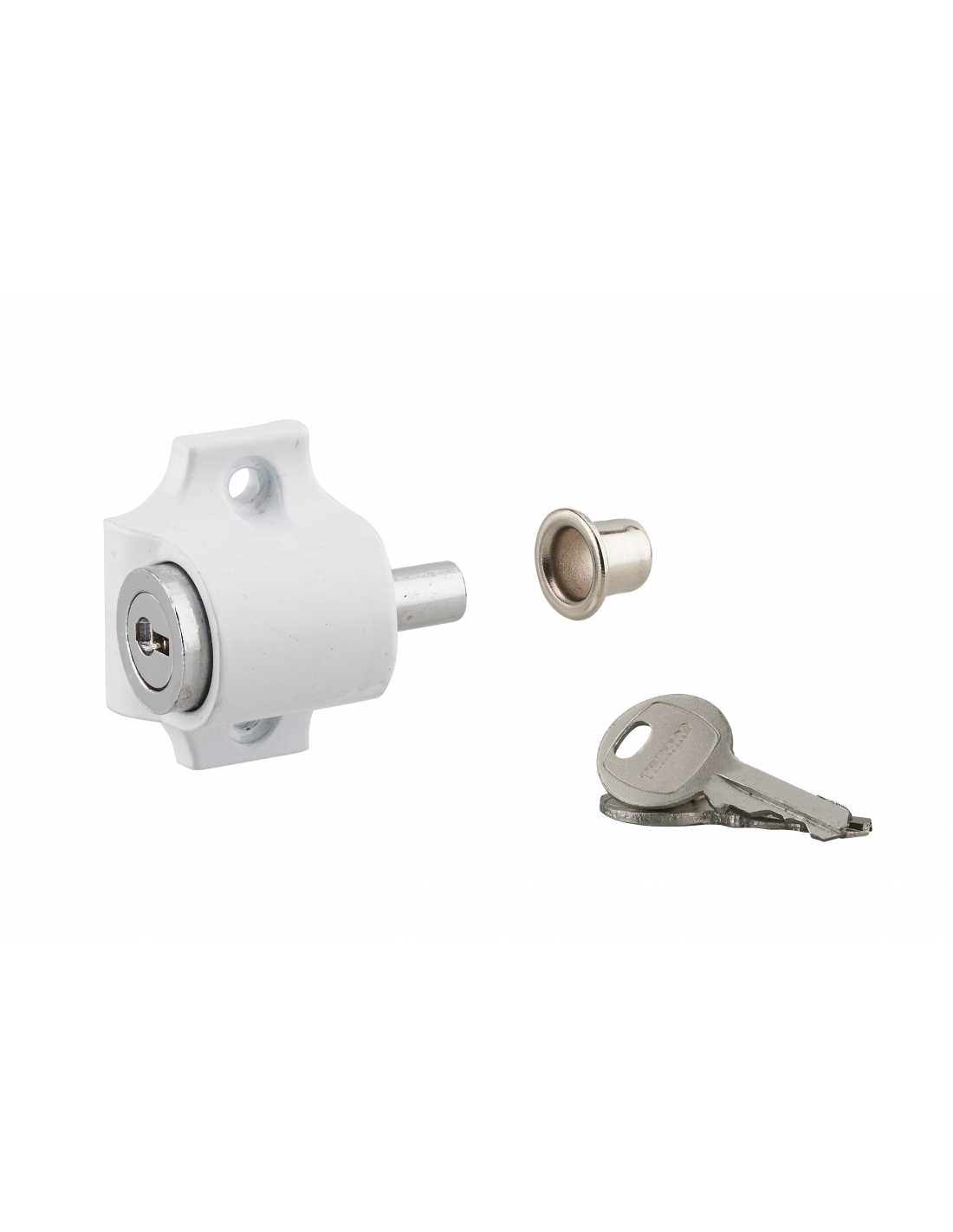 Serratura a cilindro per porta scorrevole, chiavistello a spinta, bianco, 2 chiavi - THIRARD