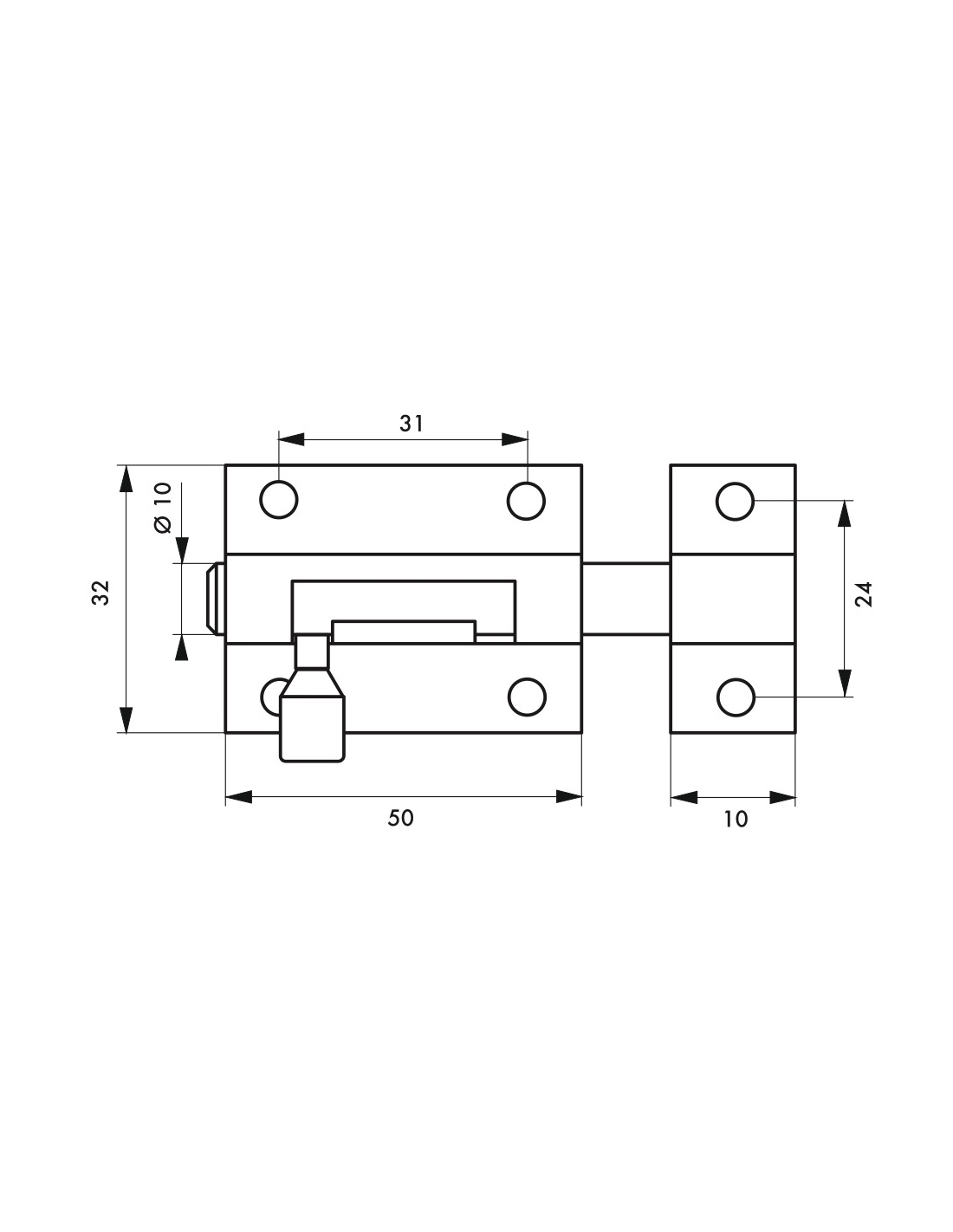 Catenaccio, acciaio, chiavistello Ø 10 mm, 32x50 mm, nichel satinato - THIRARD