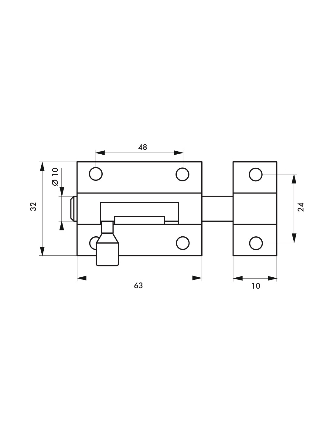 Catenaccio, acciaio, chiavistello Ø 10 mm, 32x63 mm, nichel satinato - THIRARD