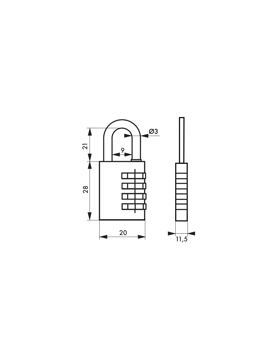 Con una dimensione di 20 mm, questo discreto lucchetto a combinazione protegge efficacemente dai tentativi di furto. Grazie alla sua finitura lucida, è ideale per la protezione di bagagli e bauli da viaggio.