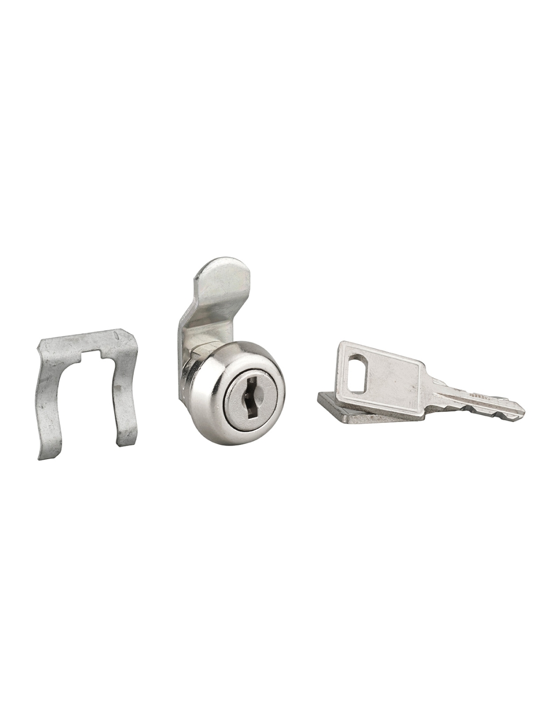 Corpo in lega pressofusa. Meccanismo a lamelle. Camma montata in posizione ore 12. 2 chiavi nichelate. Clip di fissaggio.