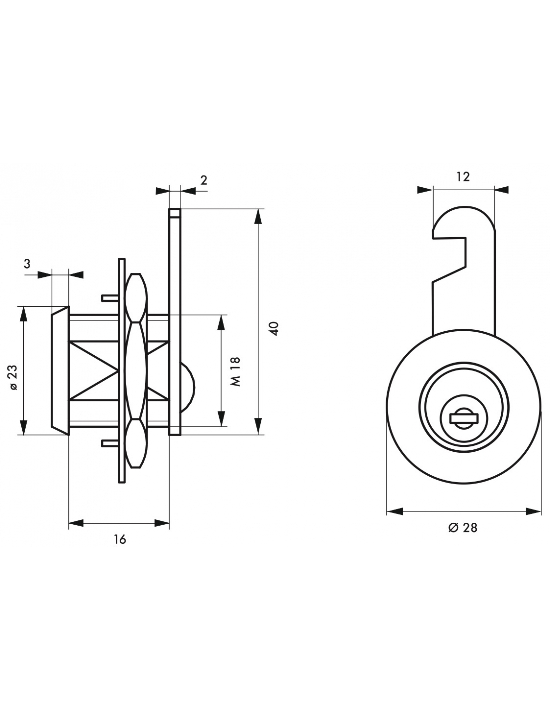 Serratura a camma per cassetta postale, nichelata, lunghezza 18 mm, 2 chiavi – THIRARD