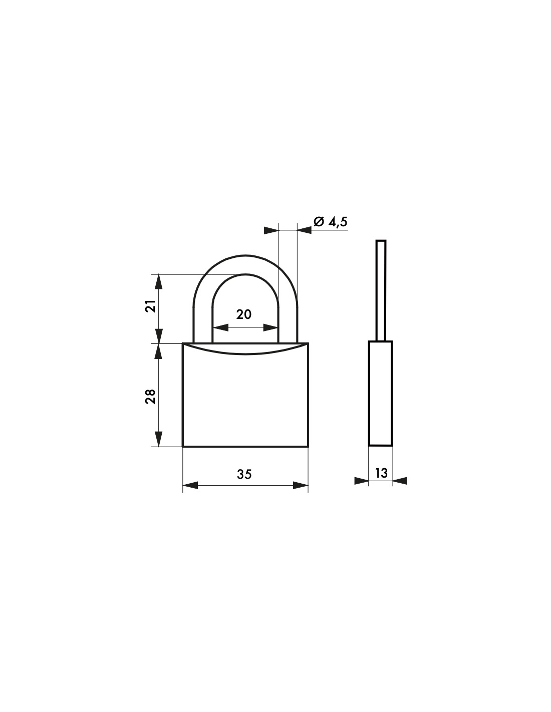Questo lucchetto a chiave di tipo 1 è disponibile in diverse larghezze in base alle vostre esigenze: 30 mm, 35 mm, 40 mm, 40 mm con arco semi-alto, 45 mm o 50 mm.
