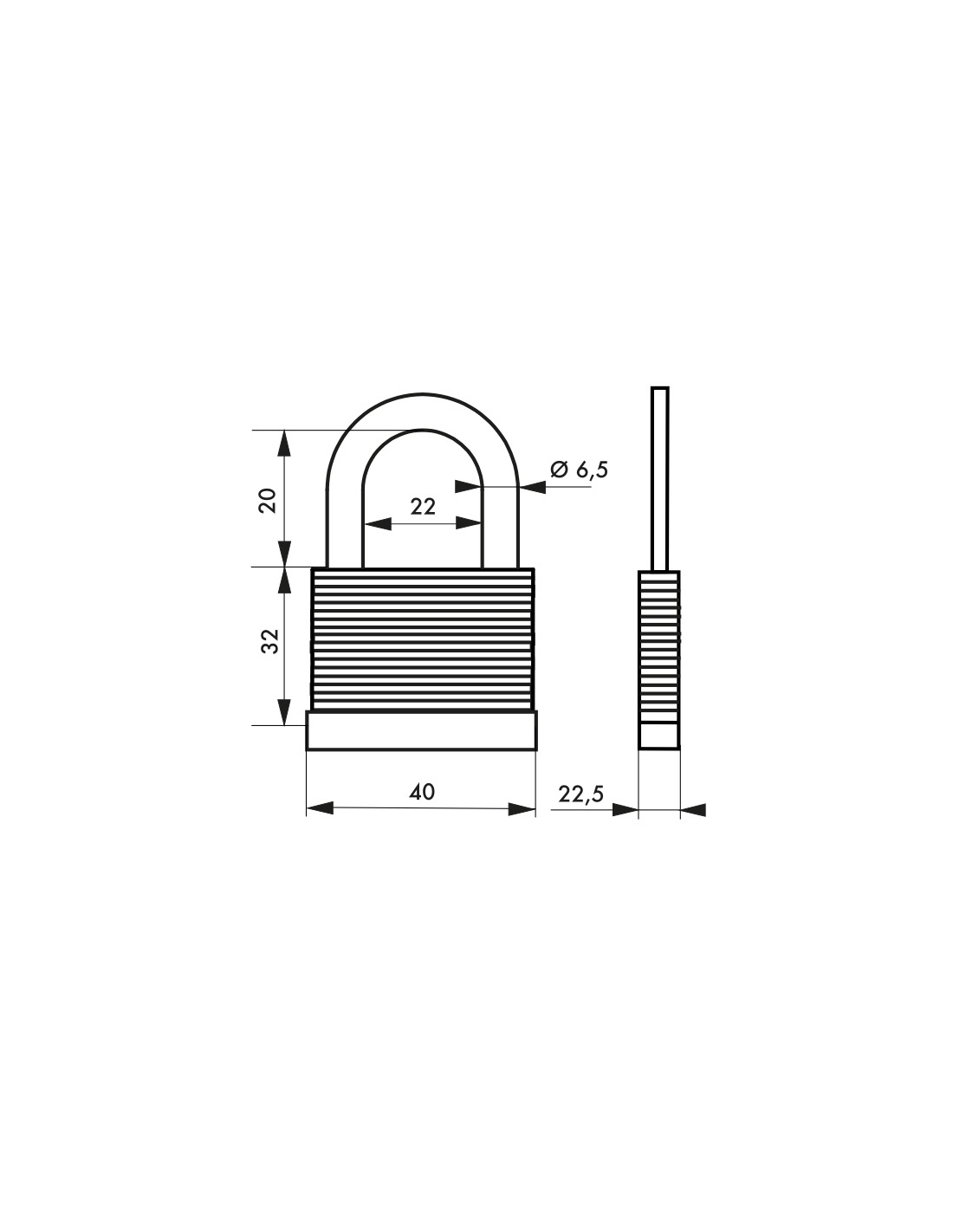 Lucchetto a chiave Slice, per interno, corpo in lamelle di acciaio, 40 mm, 2 chiavi - THIRARD