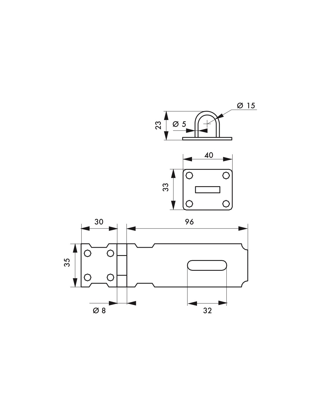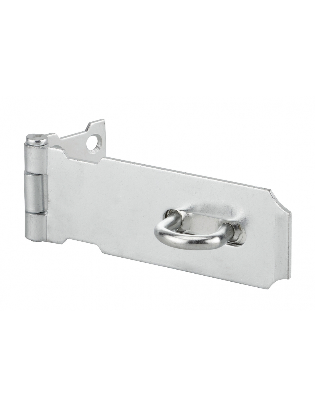 Portalucchetto Thirard in acciaio zincato per la chiusura di bauli o porte. 100 mm. Copertura delle viti del portalucchetto in posizione chiusa/bloccata con lucchetto.