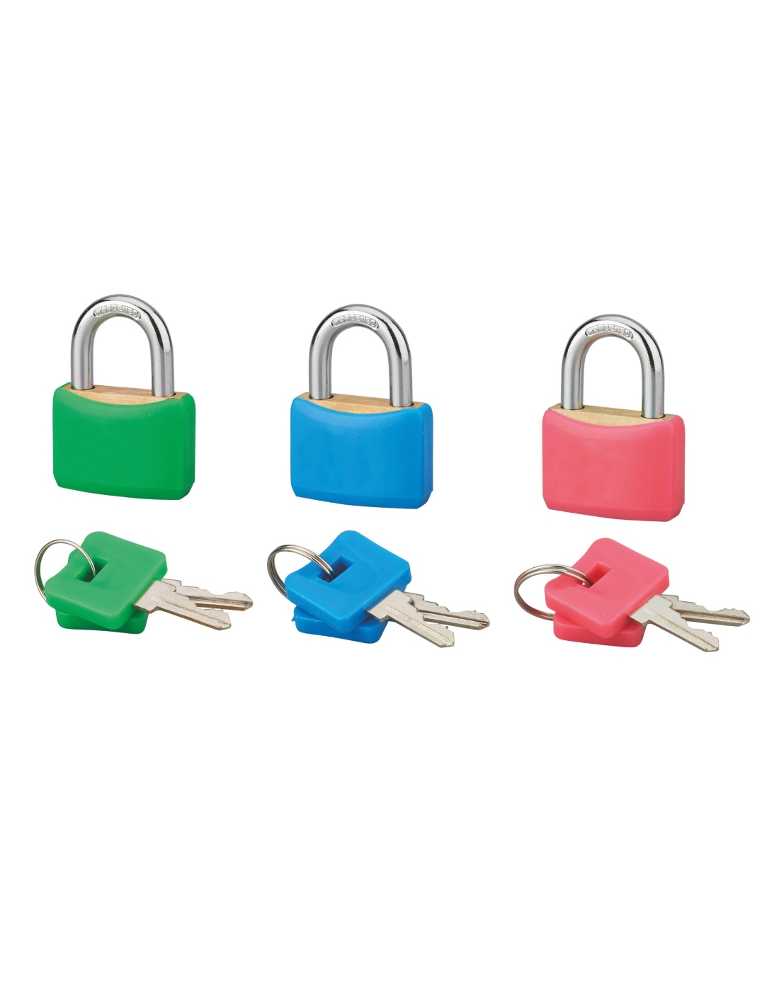 Set di 3 lucchetti SP COLOR, 30 mm, con apertura parziale, arco in acciaio cementato, 6 chiavi - SP