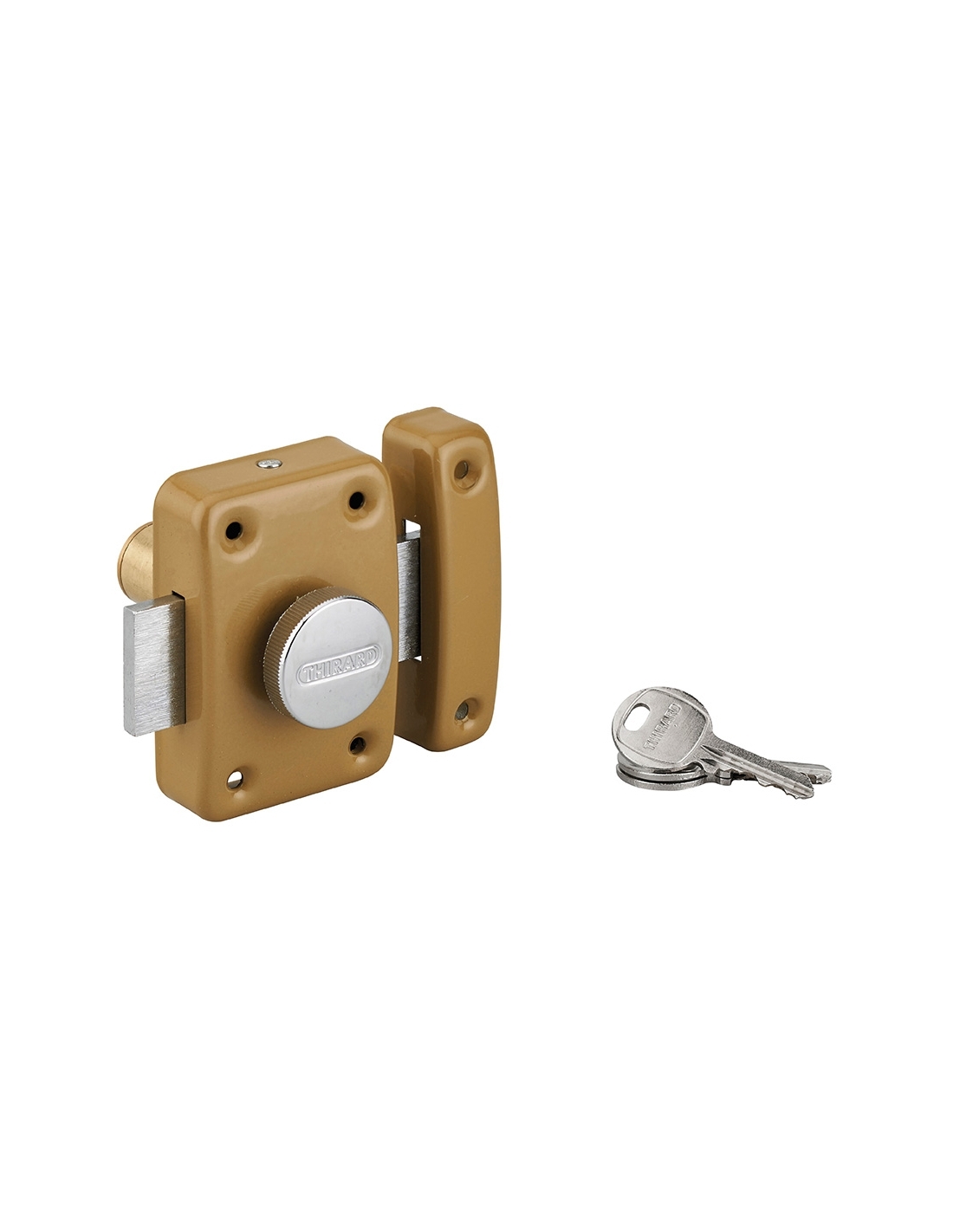 Catenaccio a pulsante Trident per porta interna, cilindro 45 mm, acciaio, 3 chiavi, finitura epossidica bronzo – THIRARD